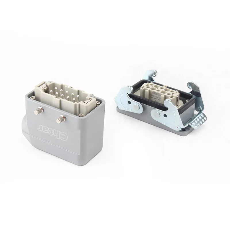 இந்த CHTAR 10 Pin TS ஹெவி டியூட்டி இணைப்பிகள் HE HD HEE, HDD உடன் பரவலாகப் பயன்படுத்தப்படுகின்றன. இது ஹெவி டியூட்டி கனெக்டோஸின் அடிப்படை மற்றும் பெண் வீட்டுவசதி பகுதியாகும். இது அலுமினியத்தால் ஆனது மற்றும் ஒற்றை கொக்கியாக வடிவமைக்கப்பட்டுள்ளது. ஹெவி டியூட்டி டெர்மினல் பிளாக் பயனர் நட்பு வகை.