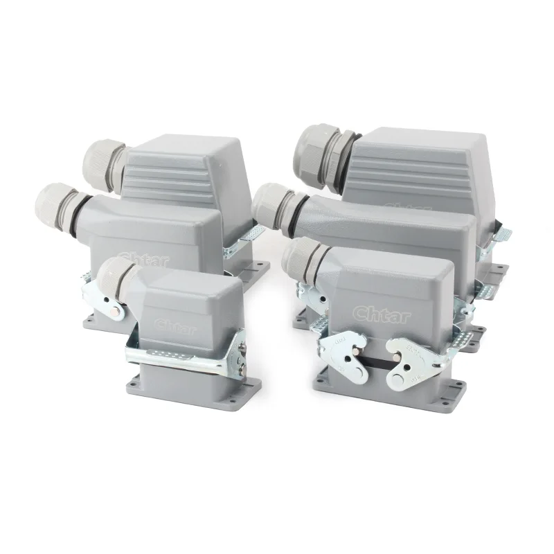 CHTAR வடிவமைத்து தயாரிக்கப்பட்ட நீடித்த 24 பின் AG ஹெவி டியூட்டி இணைப்பிகள் 24-பின் HE, HD, HEE, HDD மற்றும் பிற ஹெவி-டூட்டி கனெக்டர்களுக்கு ஏற்றது. இணைப்பான் அலுமினிய கலவையால் ஆனது மற்றும் RAL7037 சாம்பல் தூள் பூசப்பட்டது. அதன் இயக்க மின்னோட்டம் 16A, இயக்க மின்னழுத்தம் 500VAC, இயக்க வெப்பநிலை வரம்பு -40℃ முதல் +125℃ (-40℉ முதல் +257℉ வரை), பிளக்கிங் மற்றும் அன்ப்ளக்கிங் சுழற்சிகள் 500 மடங்கு, மற்றும் பாதுகாப்பு தரம் IP65 ஆகும்.