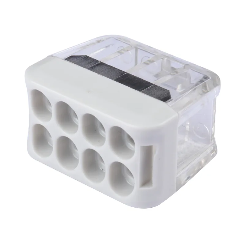 2P 3P 4P 5P 6P 8P ஃபீட்-த்ரூ வயர் க்விக் கனெக்டர்கள் லைட்டிங் மற்றும் சாக்கெட் மற்றும் பிளக்கின் வயர்களை இணைப்பதற்காக பயன்படுத்தப்படுகின்றன. விரைவு கம்பி இணைப்பிகள் பாதுகாப்பான கம்பி இணைப்பு தயாரிப்புகள், பராமரிப்பு வேலை நேரம் மற்றும் தொழிலாளர் செலவை சேமிக்க நாங்கள் எளிதாக இணைக்கப்பட்டுள்ளோம்.