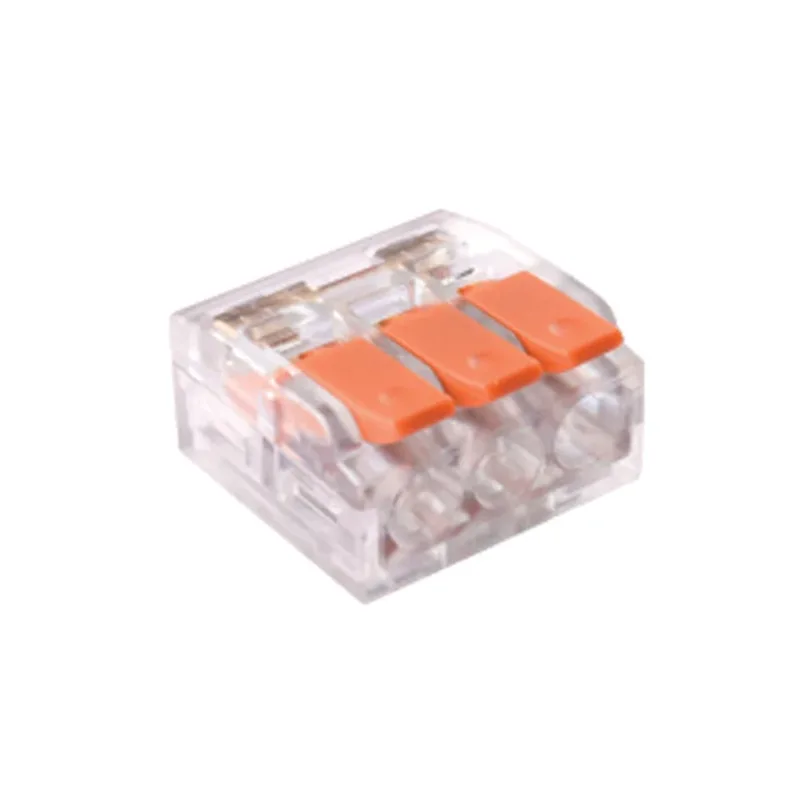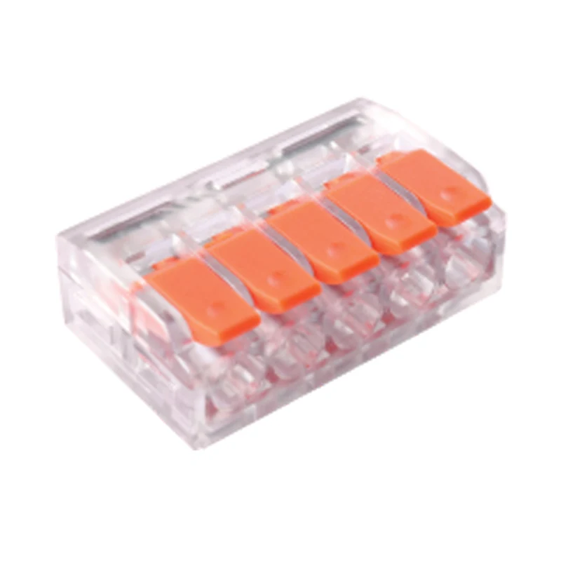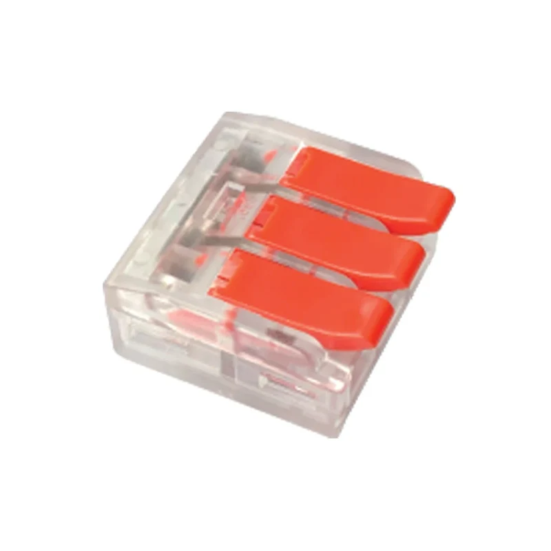 நெம்புகோல்களுடன் கூடிய ஸ்ப்ளிசிங் வயர் விரைவு இணைப்பிகள் லைட்டிங் சிஸ்டம் கம்பிகள் இணைப்புக்கு பரவலாகப் பயன்படுத்தப்படுகின்றன. விரைவு கம்பி இணைப்பான்கள் ஒரு திறமையான தயாரிப்புகள் ஆகும், இது எலக்ட்ரீஷியன்கள் தளத்தில் குறிப்பிடத்தக்க நிறுவல் நேரத்தை சேமிக்க உதவும் வகையில் வடிவமைக்கப்பட்ட பராமரிப்பு இல்லாத சந்திப்பு ஆகும்.