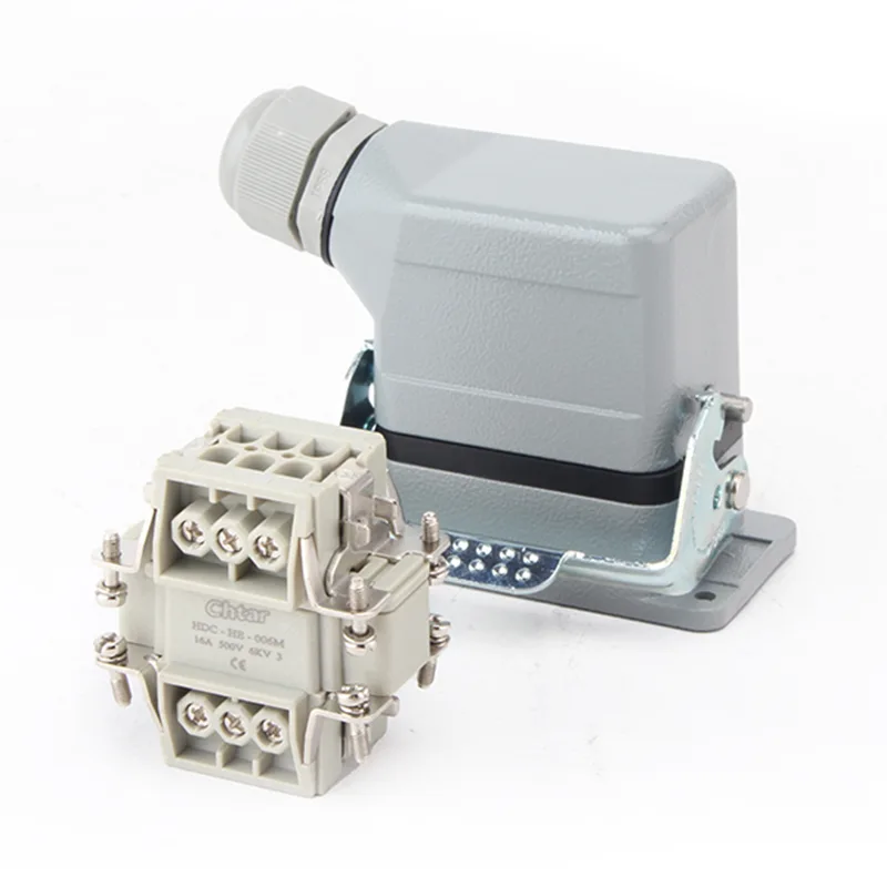 இந்த CHTAR 6 பின் AG ஹெவி டியூட்டி இணைப்பிகள் HE HD HEE, HDD உடன் பரவலாகப் பயன்படுத்தப்படுகின்றன. இது ஹெவி டியூட்டி கனெக்டோஸின் அடிப்படை மற்றும் பெண் வீட்டுவசதி பகுதியாகும். இது அலுமினியத்தால் ஆனது மற்றும் ஒற்றை கொக்கியாக வடிவமைக்கப்பட்டுள்ளது. ஹெவி டியூட்டி டெர்மினல் பிளாக் பயனர் நட்பு வகை.