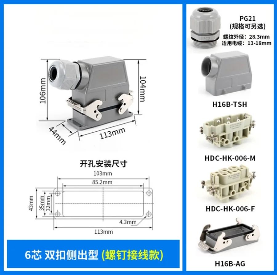 80A 4+2 பின் இன்செர்ட் ஹெவி டியூட்டி கனெக்டர் ஹெவி டியூட்டி கனெக்டரின் H16B-TSH அலுமினிய ஹவுசிங் வேலை செய்யப்படுகிறது. இது வலிமையான பிசி மெட்டீரியல் மற்றும் பித்தளை வெள்ளி பூசப்பட்ட .CHTAR பித்தளை ஊசிகள் நல்ல தரம் மற்றும் சிறந்த மின் கடத்துத்திறன் கொண்ட வெள்ளி பூசப்பட்டவை. இது நல்ல நீர்ப்புகா அம்சத்தை உருவாக்க சீல் ரப்பரைக் கொண்டுள்ளது.