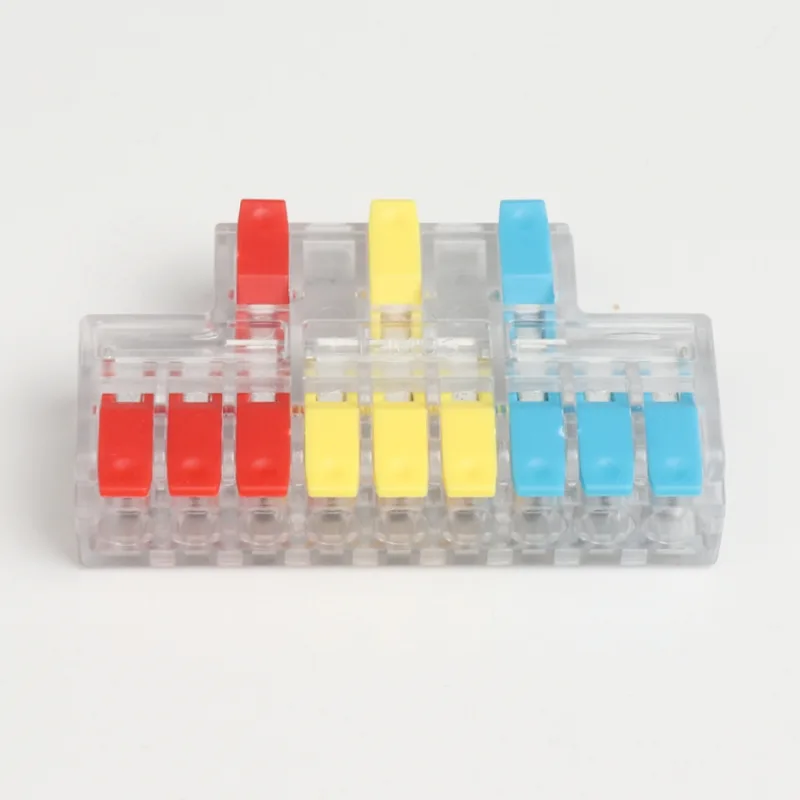 டூ-இன் ஃபோர்-அவுட் மினி ஸ்பிளிசிங் வயர் க்விக் கனெக்டர்கள் எங்களின் வழக்கமான விநியோக வயரிங் டெர்மினலை விட சிறிய வடிவத்தில் இருக்கும். சிறிய நீர்ப்புகா வழக்குகளுக்குள் மினி பதிப்பைப் பயன்படுத்தலாம். வயரிங் திசையின் வேறுபாட்டை உணர அவை வெவ்வேறு வண்ண கைப்பிடி பகிர்வுகளால் செய்யப்படுகின்றன.